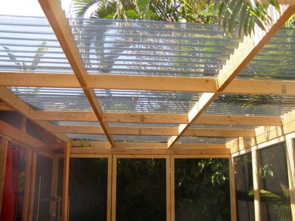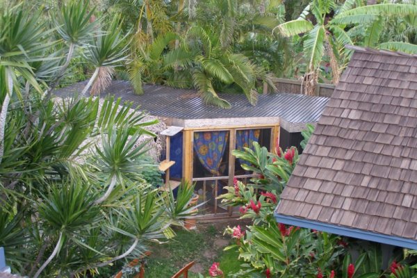 | view from top; the garden house is now connected with the aviary; new space was created protected from sun & rain |
