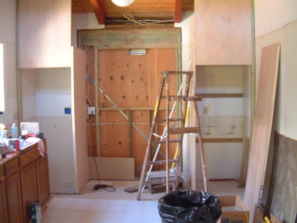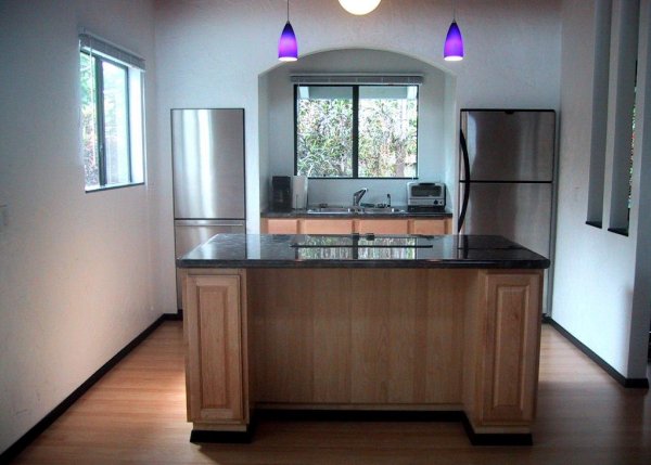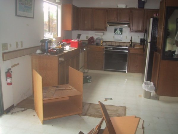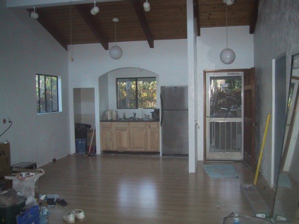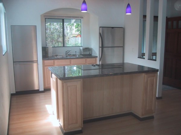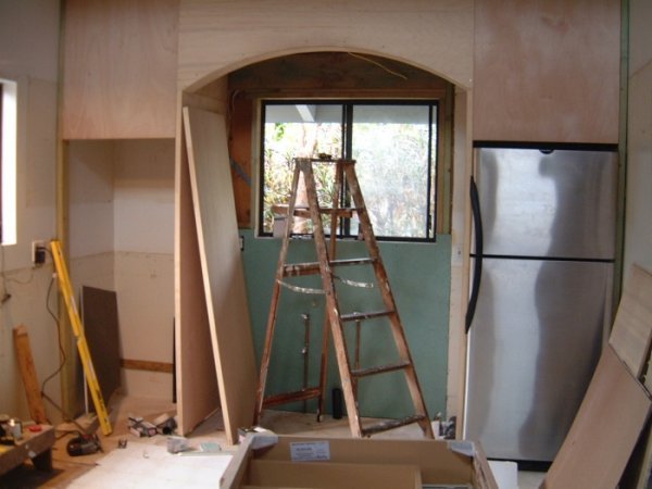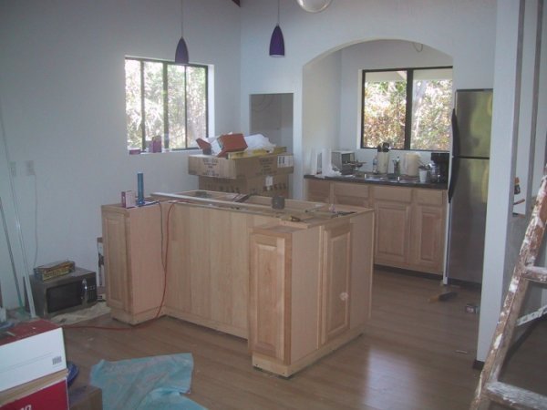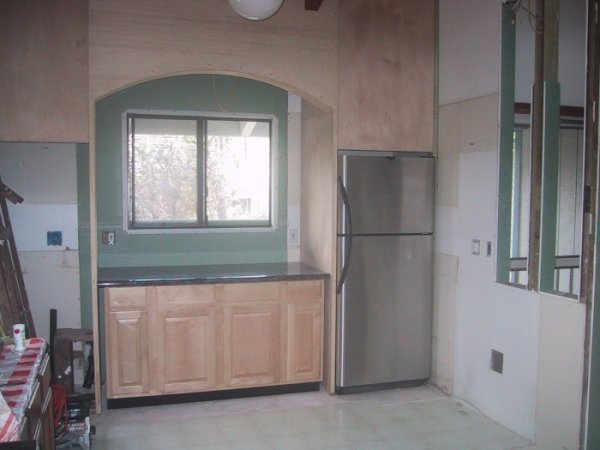w/ pergo flooring; kitchen island w/ built-in cabinets; fridge, dish washer & pantry were built into forward moved walls. The arc above the sink w/ a window set back creates a mediterranean look. |